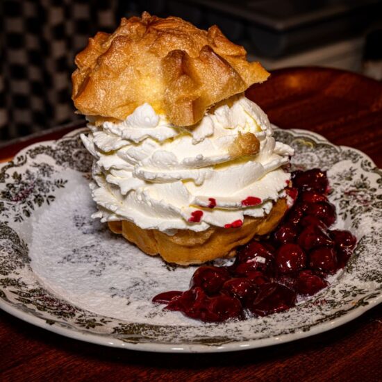 Es gibt’s Waffeln nach Geheimrezept, köstliche Windbeutel und hausgemachte Torten und Kuchen aus der Theke – täglich frisch gebacken.